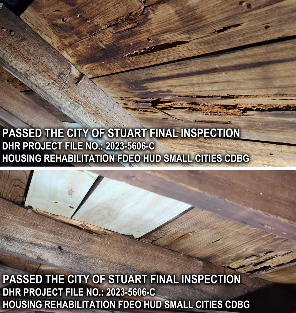 The roof passed the final inspection without the roof ridge vent system being installed as it should be according to the City of Stuart CDBG scope of work, and as we mentioned above the roof sheathing and dry-in inspections weren’t recorded.